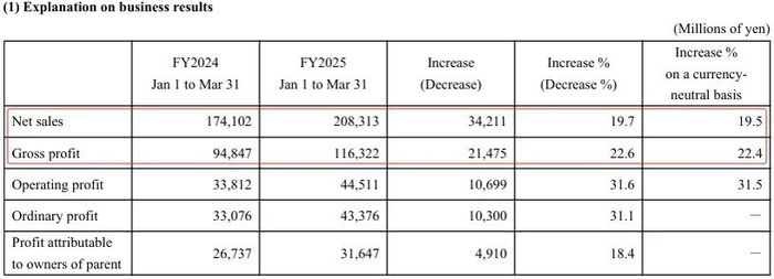 亚瑟士营收、利润双双大涨 图源:财报